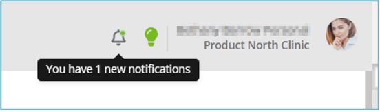 - Se ha incluido un Centro de Notificaciones al Healthway. El icono de notificación en forma de campana está disponible en la parte superior de Healthway al lado del icono del Centro de ideas. Si usted tiene notificaciones nuevas o sin haber sido vistas, el icono de notificaciones mostrará un punto verde para alertarle. También, cuando coloque el cursor sobre el icono verá el número total de notificaciones.