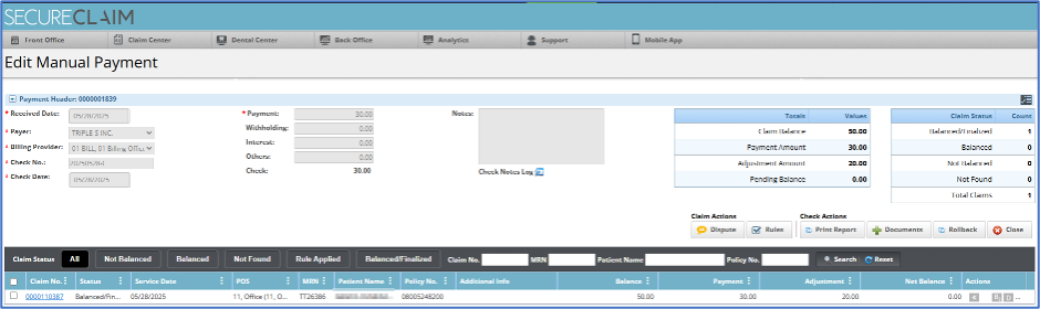 Manual/Electronic Payer Payment