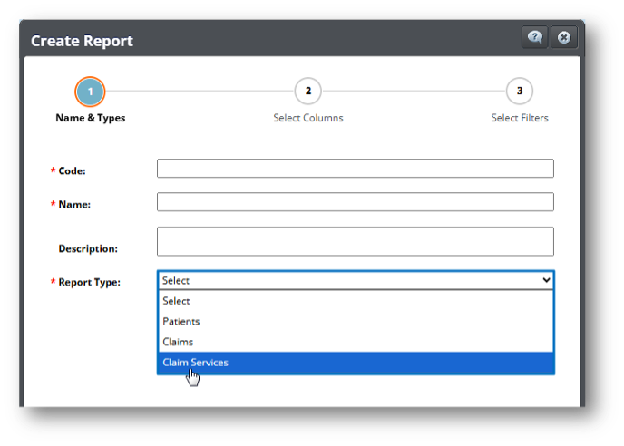 • Se ha añadido un nuevo tipo de reporte (Report Type) identificado como Claim Services al módulo Custom Report. Esta incorporación ofrece más opciones relacionadas con los tipos de reclamaciones y sus respectivos detalles. Al seleccionar Claim Services como tipo de reporte, se marcarán automáticamente columnas predefinidas para ser incluidas en el reporte. No obstante, estas columnas pueden ser editadas, eliminando o añadiendo otras disponibles según las necesidades del usuario.