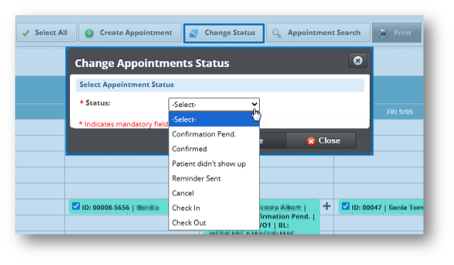 • Se ha añadido una nueva opción denominada Change Status dentro del módulo Libro de Citas, que permite modificar el estatus de las citas tanto de forma individual como mediante selección múltiple.