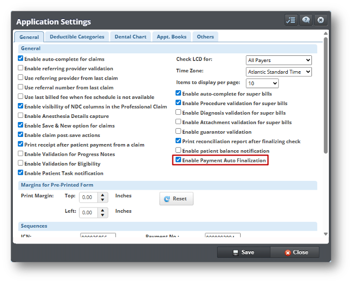 - Se ha incorporado una nueva funcionalidad en el área de reconciliación de pagos de aseguradoras: Finalización Automática de Pagos (Enable Payment Auto Finalization). Esta opción permite que, una vez se hayan registrado los pagos y ajustes necesarios para balancear una reclamación, el sistema la finalice automáticamente, siempre que esté habilitada la opción Enable Payment Auto Finalization.