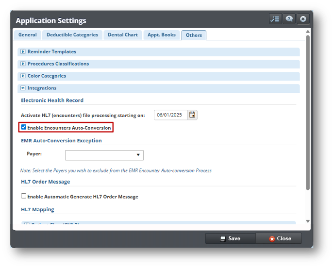 - Una vez activada, el sistema convertirá automáticamente los encuentros clínicos en reclamaciones al momento de su recepción.