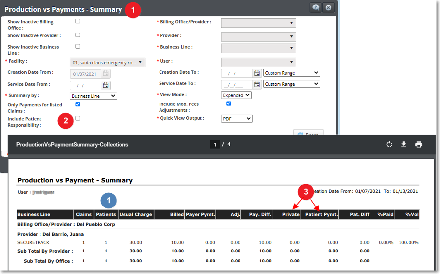 - El reporte Production vs Payment Summary ahora incluye el recuento de pacientes. Además, un filtro para eliminar la cantidad de responsabilidad del paciente del informe.
