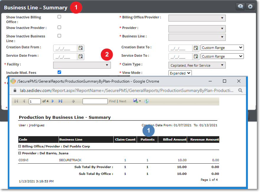 - El reporte Production Business Line Summary se puede filtrar por facilidad. Además, se agregó el recuento de reclamaciones en el informe.