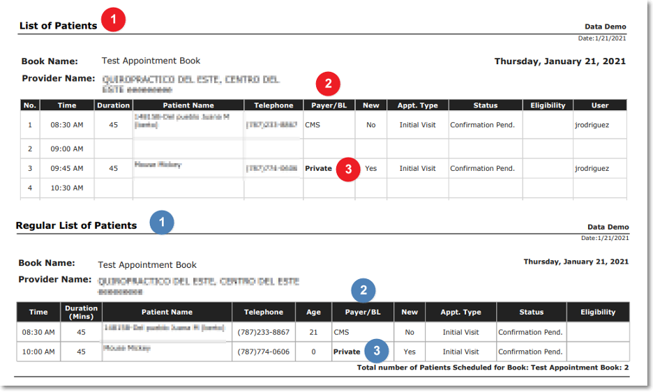 - La palabra Private se muestra para los pacientes existentes sin plan en la columna Business Line en las listas de impresión del libro de citas.