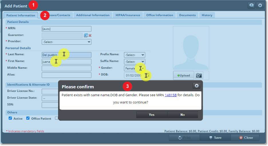 - Se agregaron más validaciones de duplicidad al crear un paciente. Ahora, se validarán los campos de los apellidos, nombre, sexo y DOB antes de grabar el demográfico.