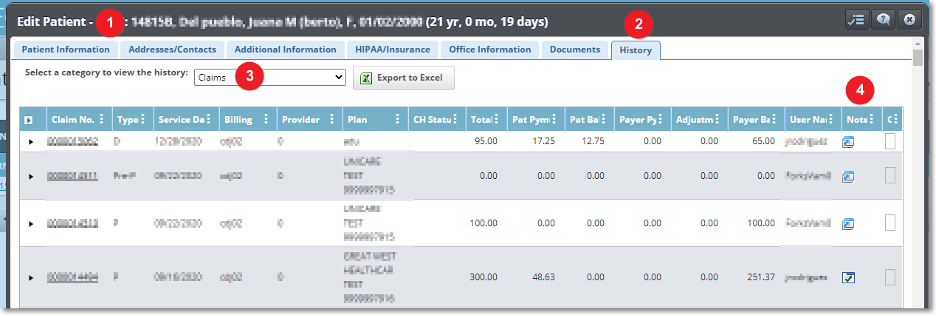 - Se agregaron las notas generales de las reclamaciones dentro de las columnas del histórico de las reclamaciones del demográfico de paciente.