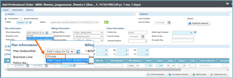 • El sistema SecureClaim se actualizó para reconocer mejor un Plan Deductible inactivo y permitir el cargo a privado desde cualquier pestaña de Claimen facturas.