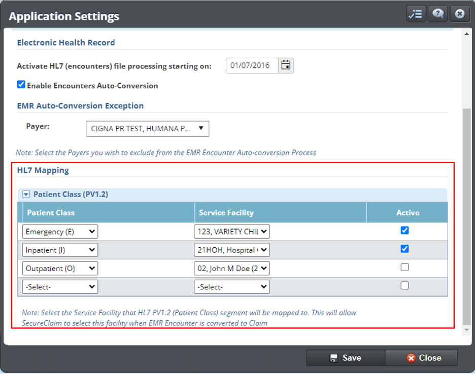- Actualizamos nuestra integración con otro software EHR para permitir que la información de Patient Class del HL7 se asigne a una Facilidad de servicio en SecureClaim. Esto permite rastrear mejor la ubicación del paciente en los sistemas integrados.