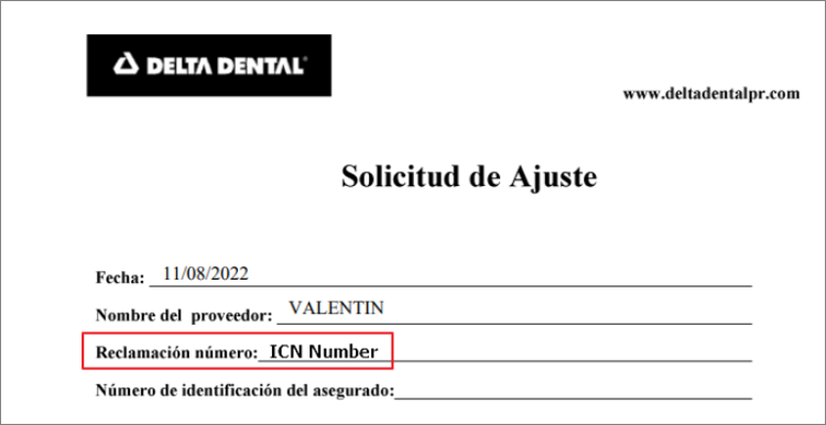 - Modificación de formularios de disputa de Delta Dental PR para ICN. El campo Reclamación Número (Claim Number) se actualizó para usar ICN en lugar del número de factura.