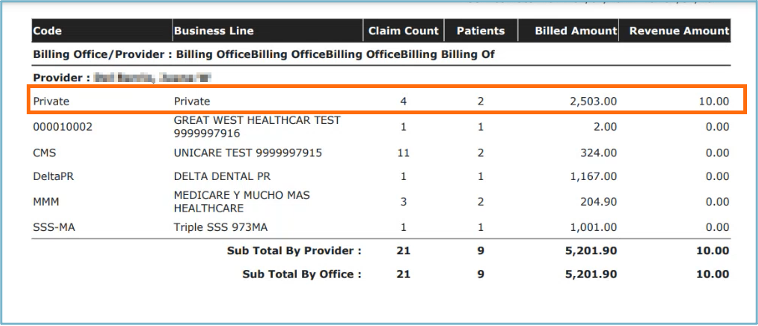 - Production by Business Line – Summary El informe se ha actualizado para incluir los importes monetarios de los pacientes privados.