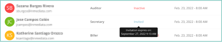 • A tooltip has been added. When you hover over the status of an Invited user, you will now see information about when the invitation is set to expire.