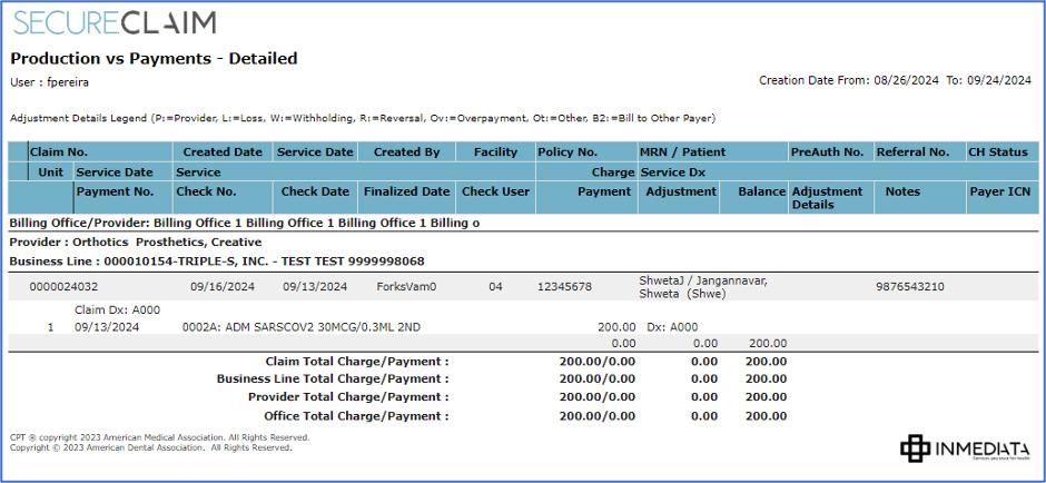 - The reports have been updated with a fresh, modern design, featuring brighter colors for column headers instead of black to help conserve printer resources. All reports now display the SecureClaim logo at the top and the Inmediata logo at the bottom.