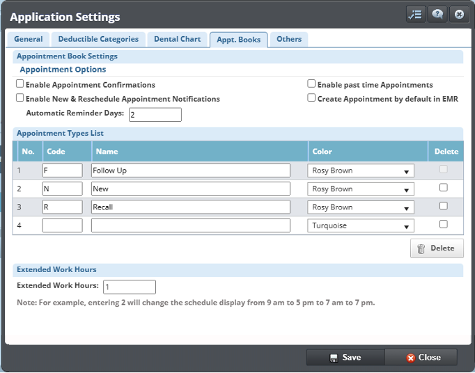 - Updated the organization of Application Settings to consolidate settings associated with the Scheduler. These options have been moved to the Appt. Books tab.