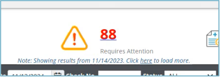 - Created a one-year cutoff for the Requires Attention counter. This allows the system to load more quickly and without timeout or errors. There is now a notification under the Requires Attention counter that says “Showing results from [date]. Click here to load more.” Which will allow you to load items older than 1 year old if you need to view them.