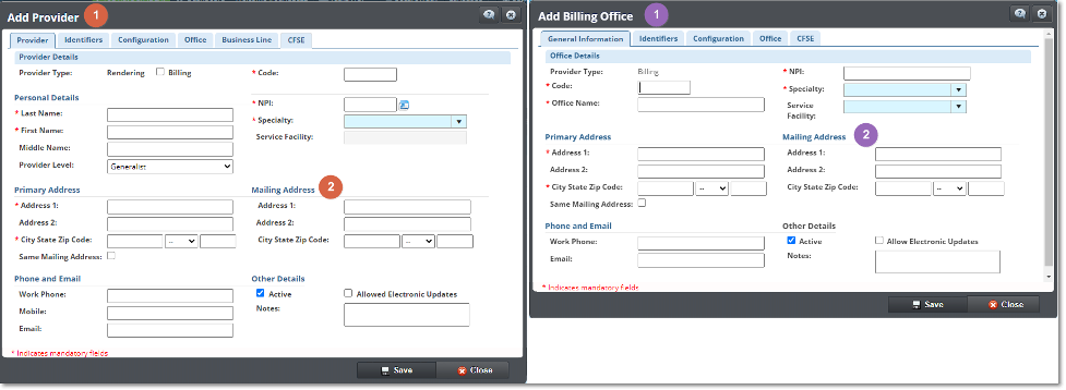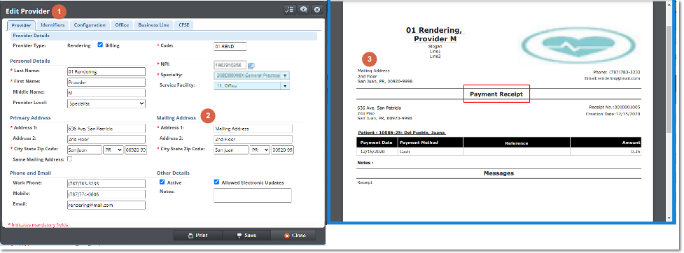 - Billing mailing address was implemented in the Billing/Rendering Provider configuration.