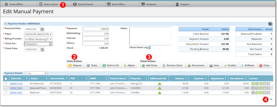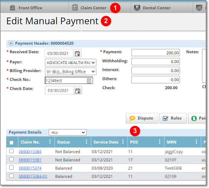 - The Place of Service column was implemented in the Payment Details grid of the payment.