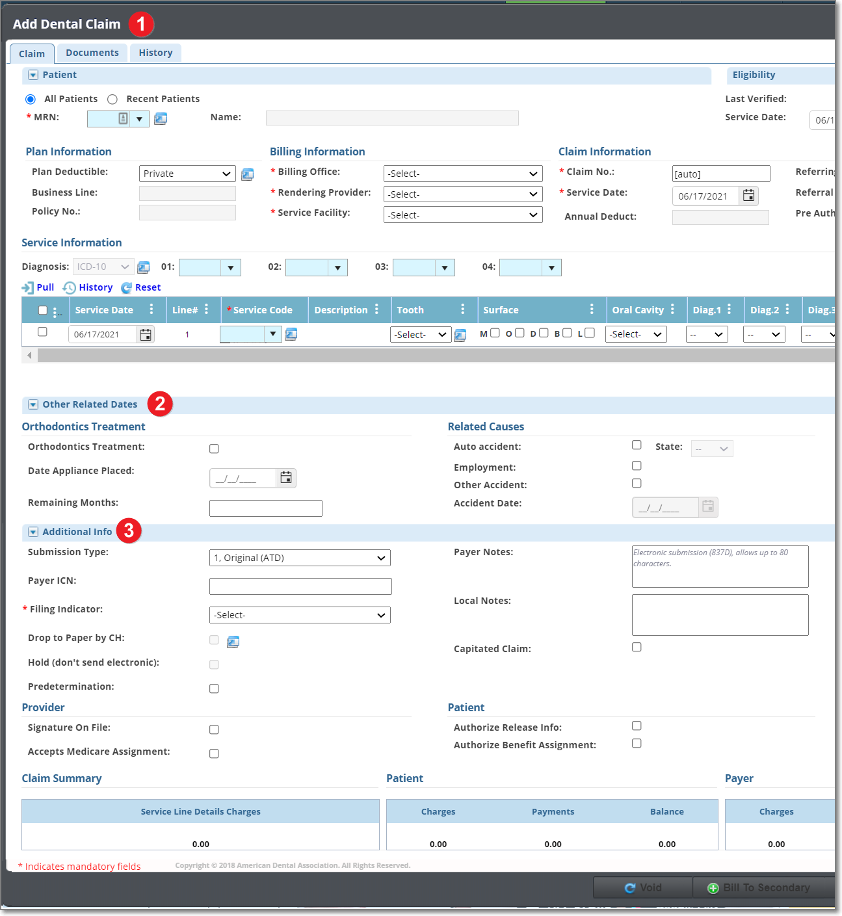 • Dental Claim – Additional Info area will now be a section under the Claim tab.