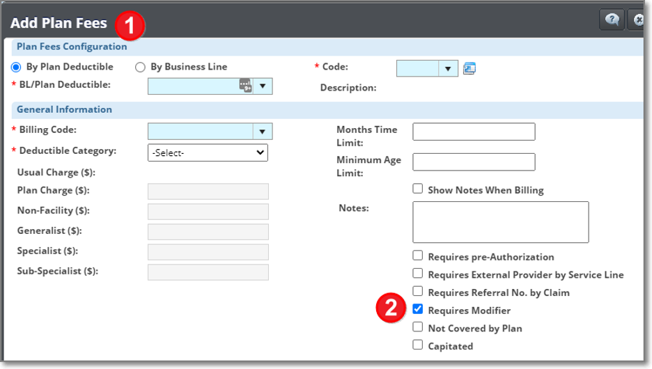 • Requires Modifiers can be configured at Plan Fees configuration window.