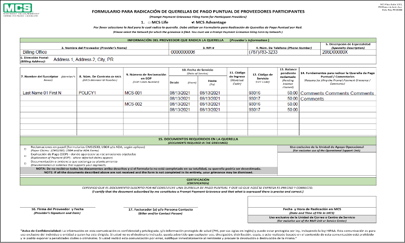 - The MCS Life / Advantage dispute form has been updated to the latest version.