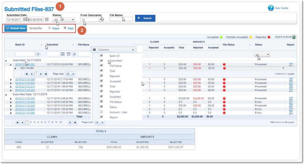 - Some cosmetic changes were done in the Submitted Files-837 module, those changes will help you to a better understanding the application.